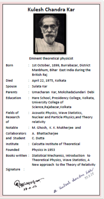 The Calcutta Institute of Theoretical Physics ( formerly known as “Institute of Theoretical Physics” ) was established in 1953 by Prof Kulesh Chandra Kar ( Presidency College, Calcutta ) as a forum where discussion and meetings on new and emerging topics in physics could take place which would lead to new insights and research on contemporary topics. As the academic world became more and more professional and knowledge more and more specialized, organizations that started as individual enterprises found it difficult to keep up. However, we feel that institutions such as these can play an important role in the dissemination of knowledge if one can bring about some changes which can allow them to interface better with today’s society.
